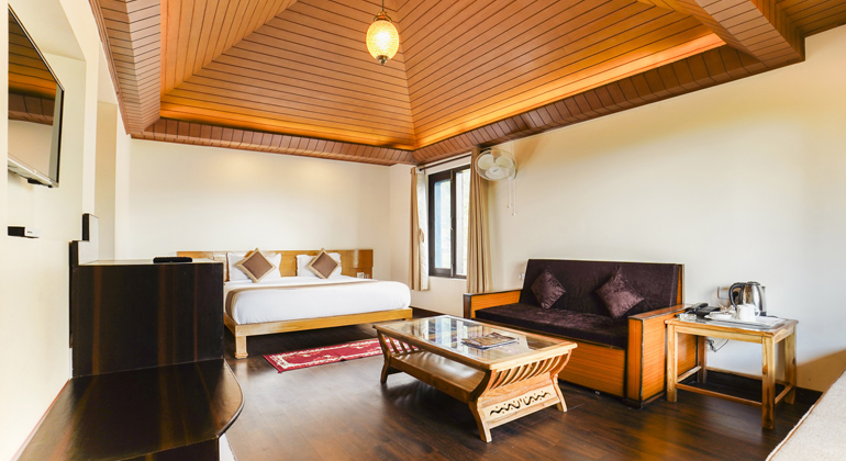 Boros Family Room - A world of unrivalled luxury and excellent facilities, Boros Resort's premium rooms are lavishly adorned with tasteful interiors and all the amenities that any modern traveller could possibly need. Impeccable and prompt, our in-room services provide seamless comfort to the guests. The exclusive balconies of the room offer enchanting views of the lofty Himalayas and the dense forests of Jim Corbett around the resort.